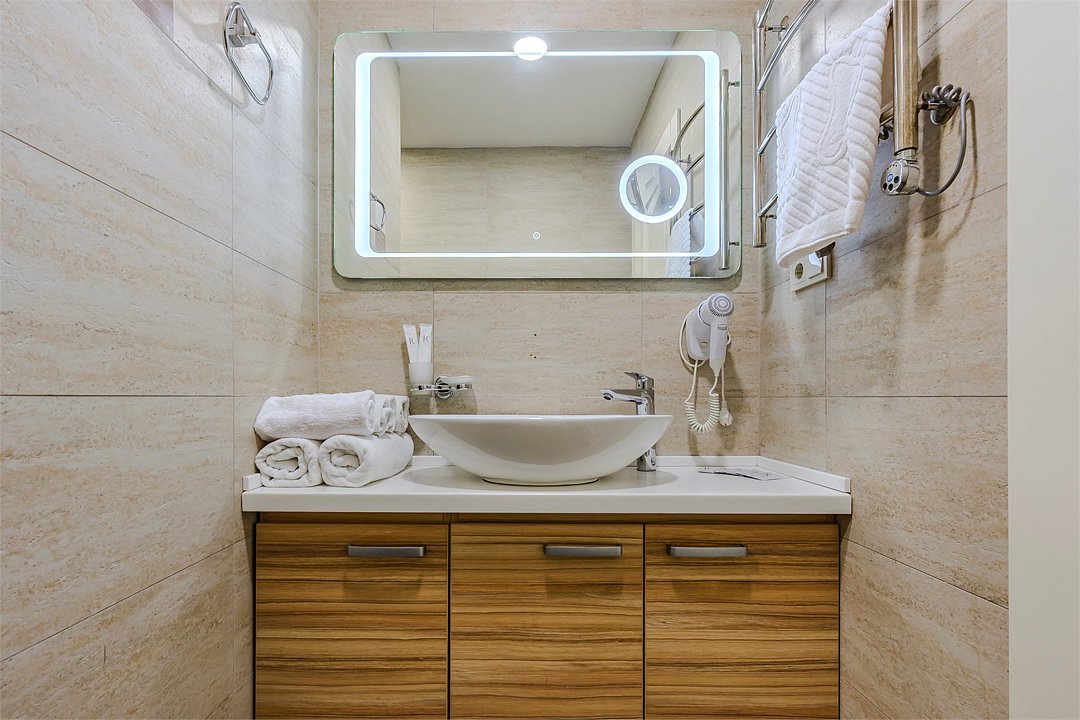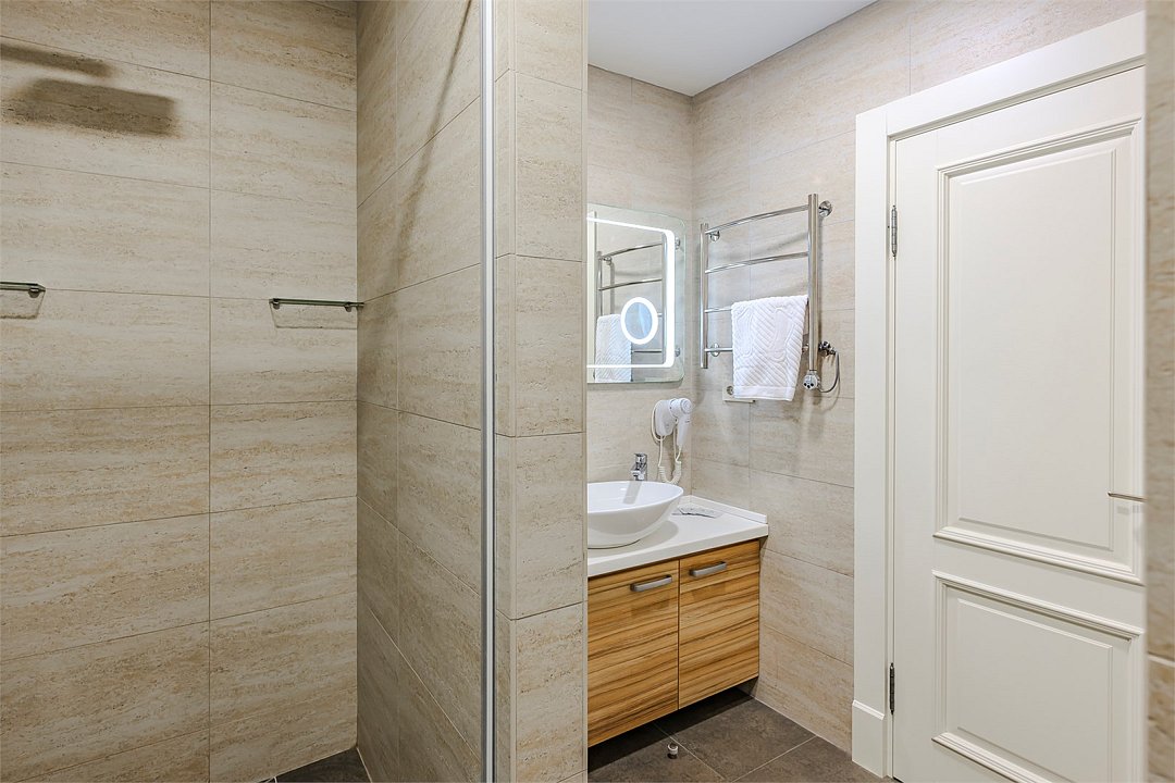 - с ванной или душевой кабиной