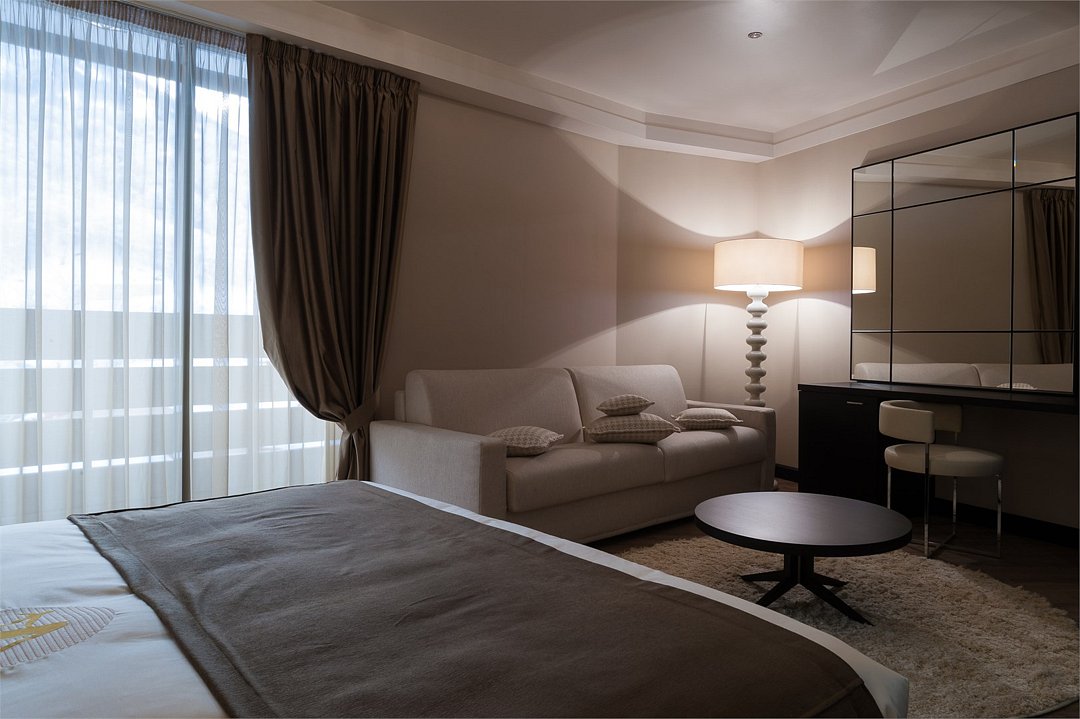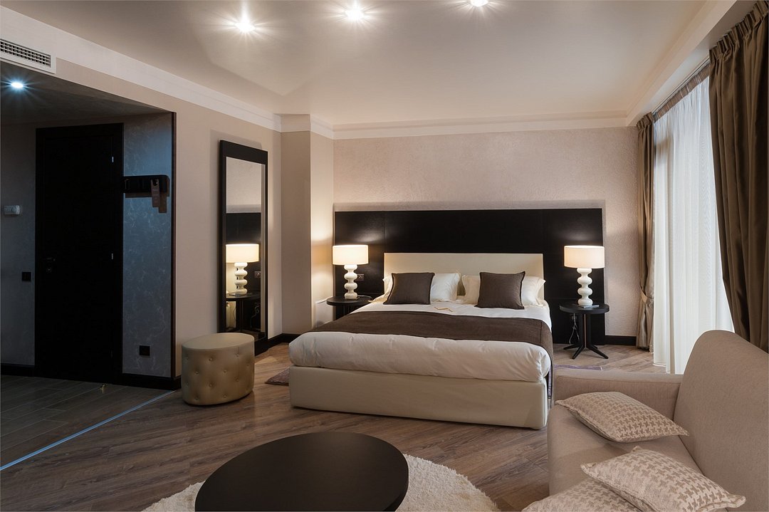 Номера категории "Люкс" в отеле Villa Adriano - дизайнерские двухкомнатные номера с балконом, площадью 43 м2, с уютной гостиной и спальней, все оснащение номера выполнено на заказ в Италии по проектам лучших дизайнеров интерьеров, которые постарались сделать номера максимально уютными и респектабельными для VIP гостей нашего отеля. Здесь Вы найдете все, что необходимо для Вашего комфортного пребывания и отдыха.Услуги и удобства