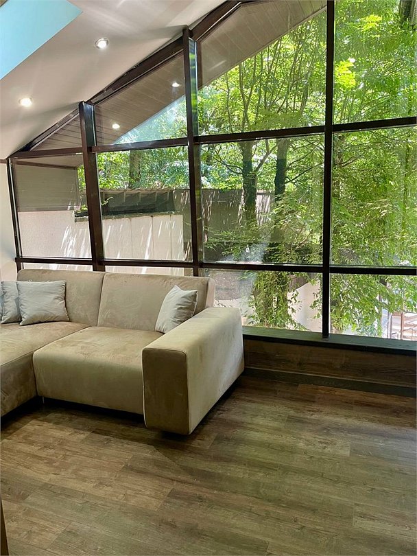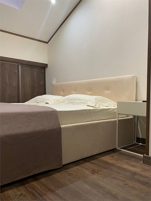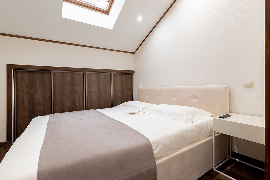 телевизор, Wi-Fi, система климат-контроля, фен, плита для приготовления пищи, ванная комната, ванна, санузел, халаты, банные полотенца, тапочки, гигиенические средства, двуспальная кровать, шкаф для одежды, гардеробная, вешалки, зеркало, унитаз, раковина, вид во двор, панорамные окна, цифровое тв, диван-кровать, телевизор с плоским экраном, кухонный уголок, шкаф-купе, мансардные окна, фанкойл, вешалки-плечики, мыло, окна от пола до потолка, вода из артезианской скважины, можно с питомцамиВ номере