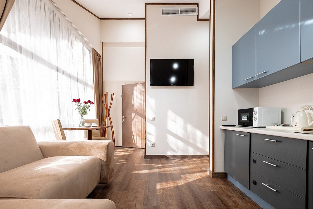 телевизор, два телевизора, Wi-Fi, интернет, система климат-контроля, светильник, настольные лампы, фен, электронные замки, утюг, ванная комната, ванна, ванна или душевая кабина, санузел, теплый пол, халаты, банные полотенца, тапочки, гигиенические средства, косметические средства, двуспальная кровать, гладильная доска, диван, тумбы, стулья, шкаф для одежды, вешалки, журнальный столик, багажная тумба, зеркало, ковер, две комнаты, мини-бар, чайный набор, обслуживание номеров, информационная карта, меню, сейф, чайник, унитаз, раковина, мягкая мебель, косметическое зеркало, питьевая вода, гостиная зона, отопление, душ, кресло, ламинат, стаканы, туалетный столик, стул, стол, туалетный столик, туалетные средства, туалет, цифровое тв, диван-кровать, раскладной диван, внутренний телефон, телевизор с плоским экраном, мини-холодильник, шкаф-купе, гостиничная парфюмерия, фанкойл, пуфик, общественный бассейн, можно с питомцамиВ номере