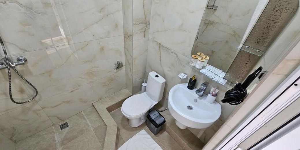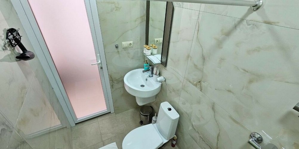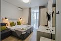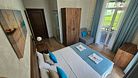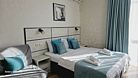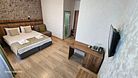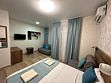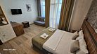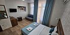 В номере: 1 двуспальная кровать, 1 диван односпальный, 1 еврораскладушка. Имеется телевизор, кондиционер, шкаф, вешалка, зеркало, журнальный столик, холодильник, стулья, корзина для мусора. Индивидуальная ванная комната: душ, раковина, туалет.