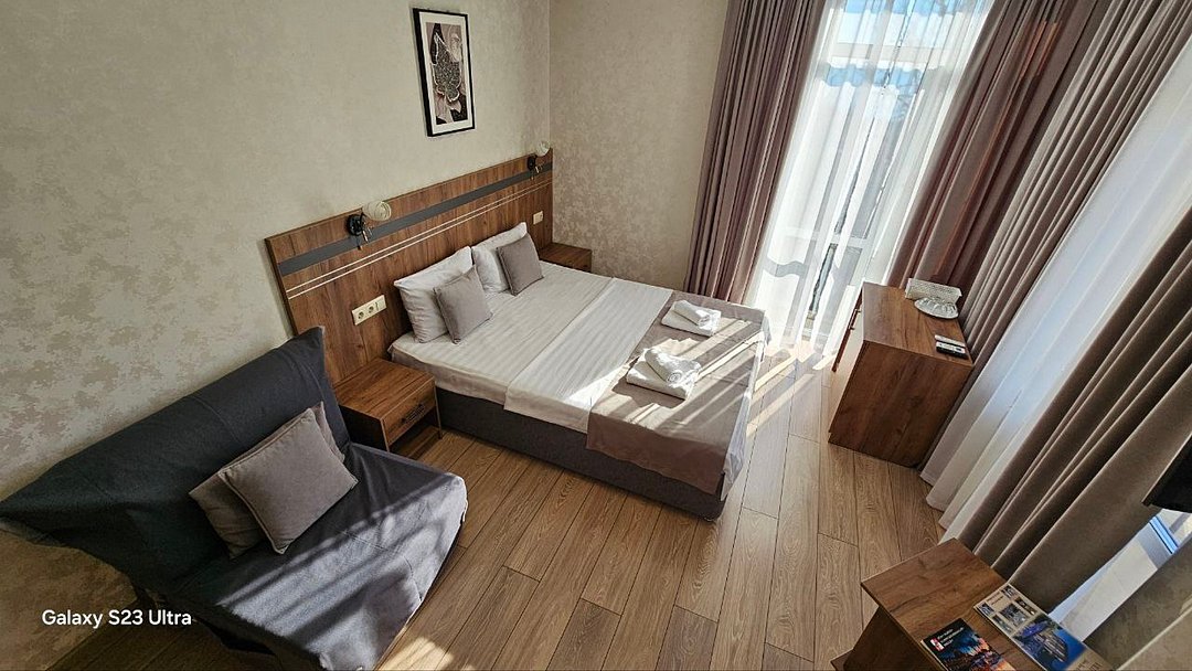 Семейный отдыхДостоинстваСвежий отличный ремонт. Везде чистота. В номерах никакой лишней живности не обнаружено. Обслуживание просто на высшем уровне. Любой вопрос, проблема решаются в течении пары минут. На территории есть собаки. Очень милые, нам они особенно приглянулись. Номера небольшие, но уютные.