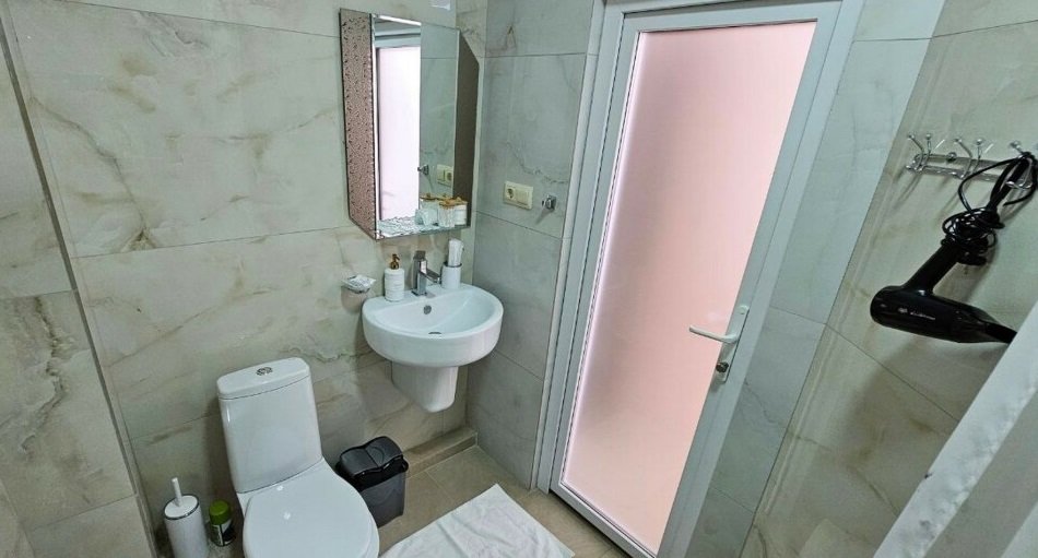 Индивидуальная ванная комната: душ, раковина, туалет. В стоимость входит: Постельное бельё, полотенца, мыло.