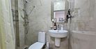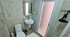 Индивидуальная ванная комната: душ, раковина, туалет.