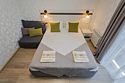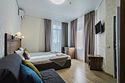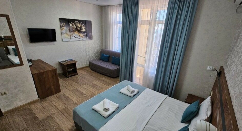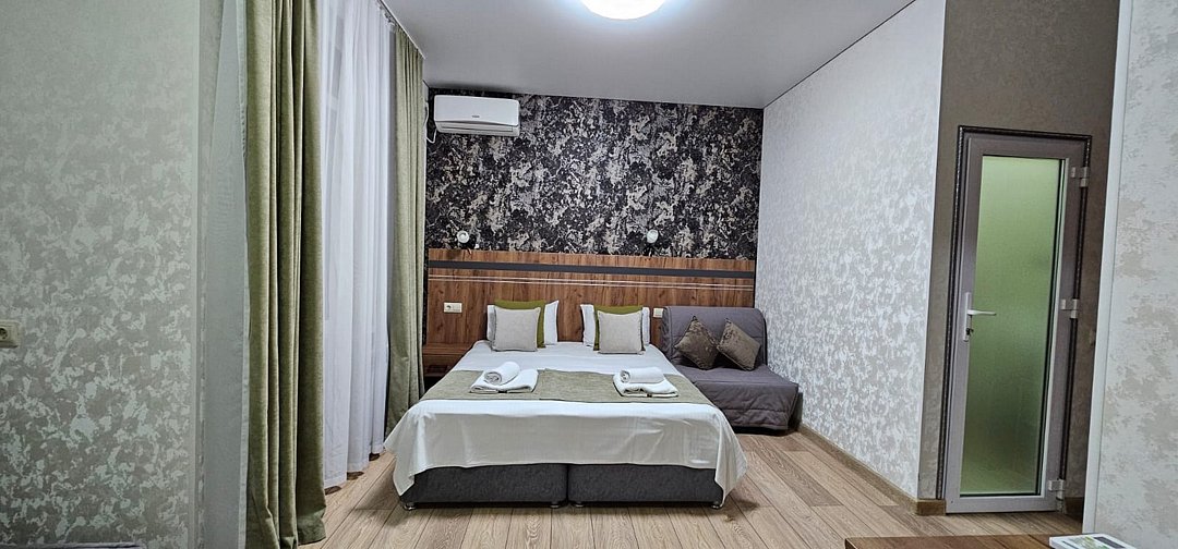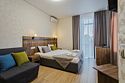 В номере: 1 двуспальная кровать или 2 односпальные кровати, 1 двуспальный диван, 1 кресло - кровать.