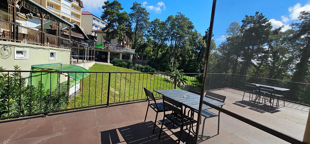 Трёхместный комфортный номер с видом на лес.