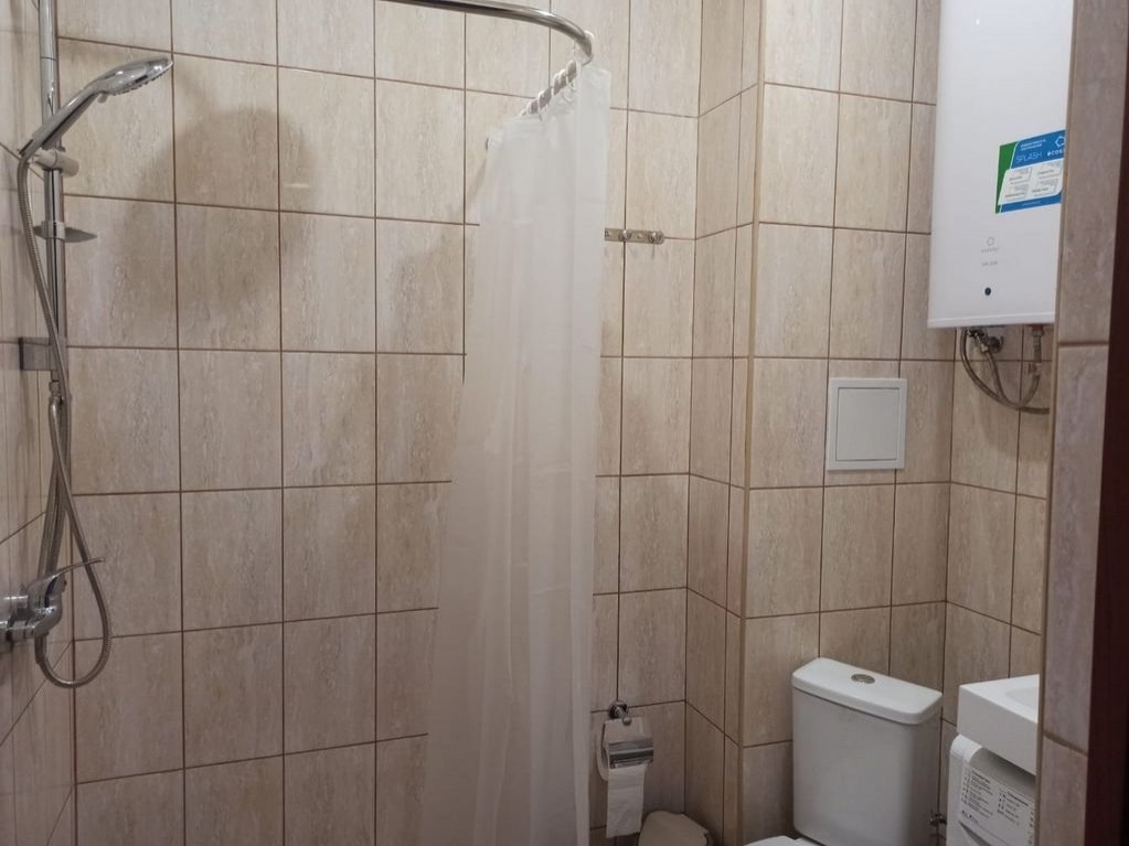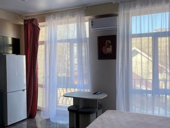 Студия площадью 26 кв.м с видом во двор. Подходит для размещения 2 человек. Студия с приятным интерьером. В студии: 1 двуспальная кровать. Имеется телевизор, кондиционер, шкаф, вешалка, обеденный стол, стулья, кухня, посуда, столовые приборы, микроволновая печь, электрический чайник, холодильник, электрическая плита, фен. Индивидуальная ванная комната: душ, раковина, туалет. В стоимость входит: постельное бельё, полотенца, мыло. WI-Fi бесплатно на всей территории. Бесплатная общественная парковка за территорией.В номере