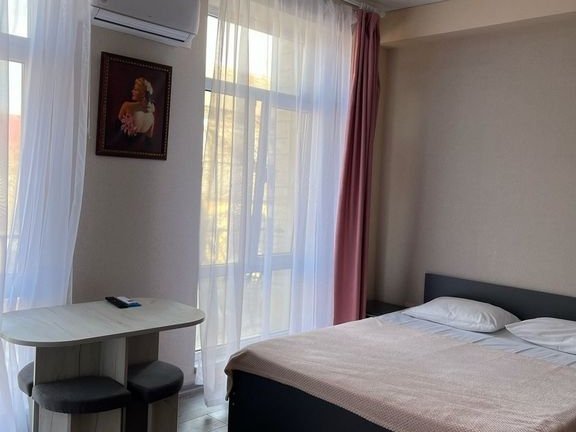 Студия комфорт площадью 24 кв.м с балконом с видом во двор. Подходит для размещения 2 человек. Студия с приятным интерьером. В студии: 1 двуспальная кровать. Имеется телевизор, кондиционер, шкаф, вешалка, обеденный стол, стулья, кухня, посуда, столовые приборы, микроволновая печь, электрический чайник, холодильник, электрическая плита, фен. Индивидуальная ванная комната: душ, раковина, туалет. В стоимость входит: постельное бельё, полотенца, мыло. WI-Fi бесплатно на всей территории. Бесплатная общественная парковка за территорией.В номере