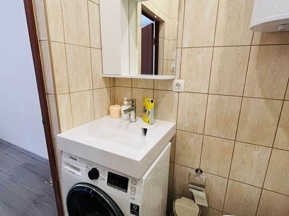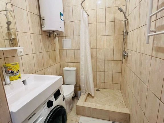 Апартаменты площадью 28 кв.м с видом во двор. Подходит для размещения 3 человек. Апартаменты с приятным интерьером. В апартаментах: 1 двуспальная кровать, 1 односпальный диван. Имеется телевизор, кондиционер, шкаф, вешалка, обеденный стол, стулья, кухня, посуда, столовые приборы, микроволновая печь, электрический чайник, холодильник, электрическая плита, фен, стиральная машина, сушилка для белья, утюг, гладильная доска. Индивидуальная ванная комната: душ, раковина, туалет. В стоимость входит: постельное бельё, полотенца, мыло. WI-Fi бесплатно на всей территории. Бесплатная общественная парковка за территорией.В номере