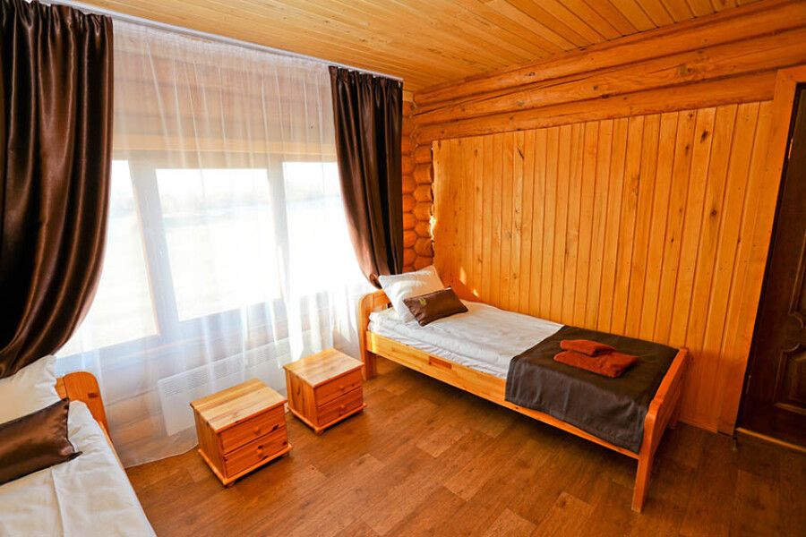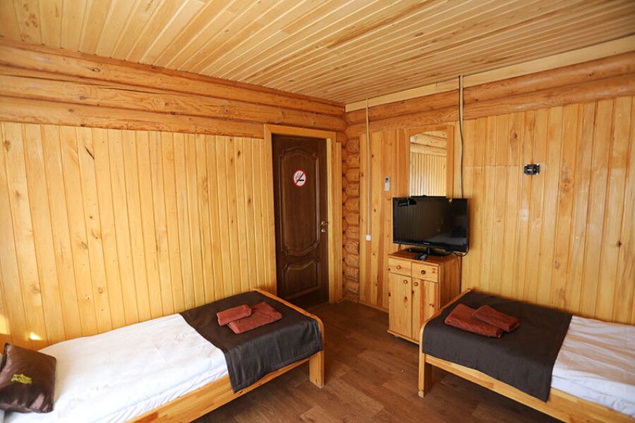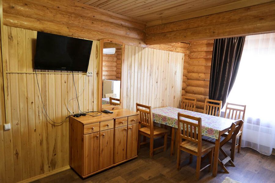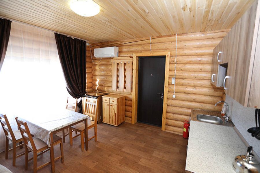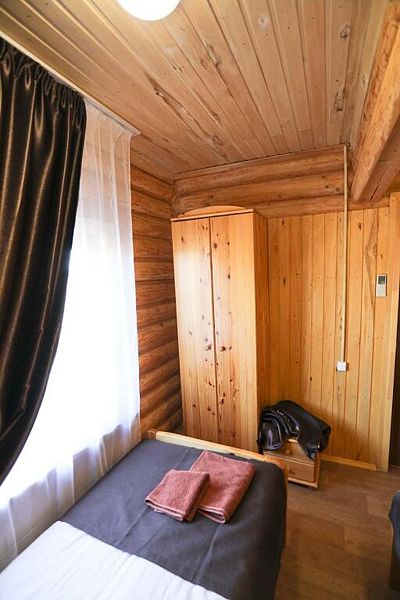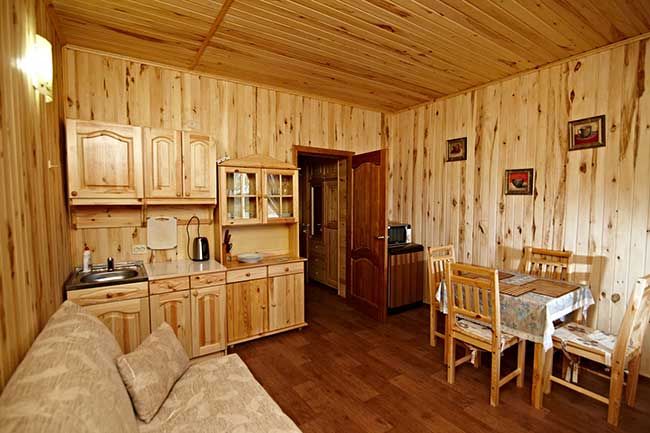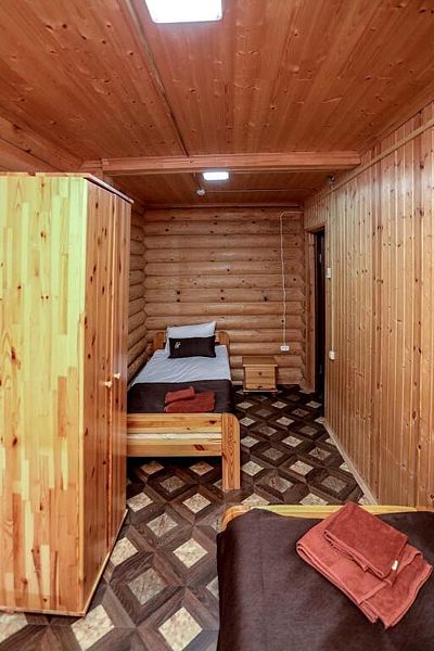 На выбор гостей представлены коттеджи: на 2,3,4 номера, таунхаус на 8 номеров, а также дом для VIP-гостей. Интерьер жилища выполнен в эко-стиле. Большие спальни имеют необходимое современное оснащение.
