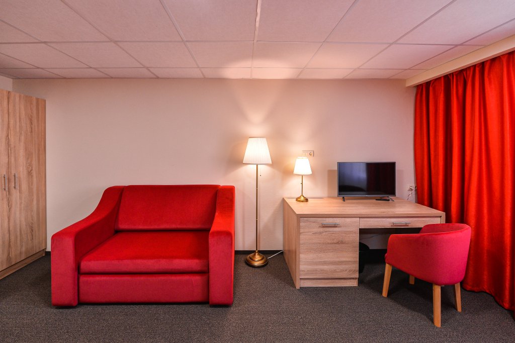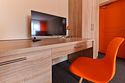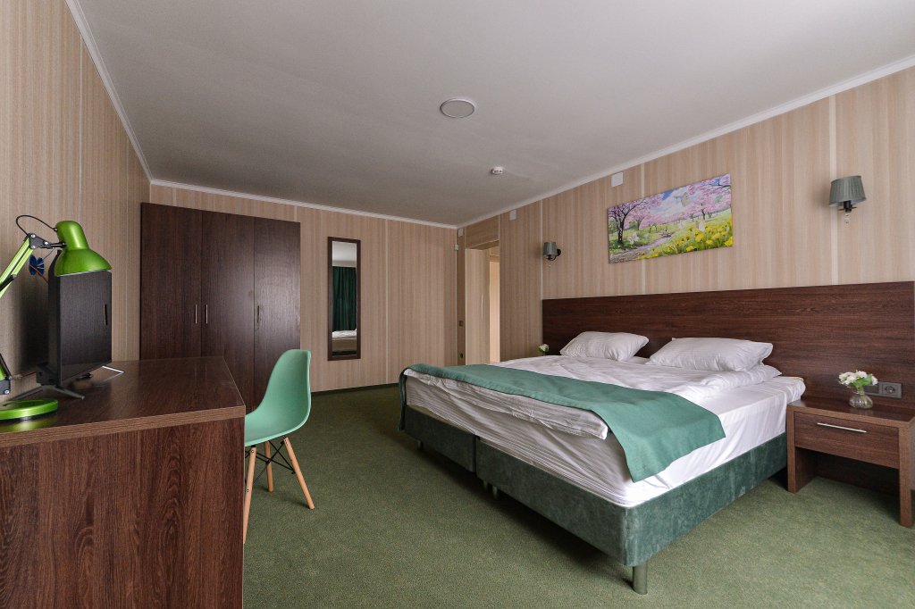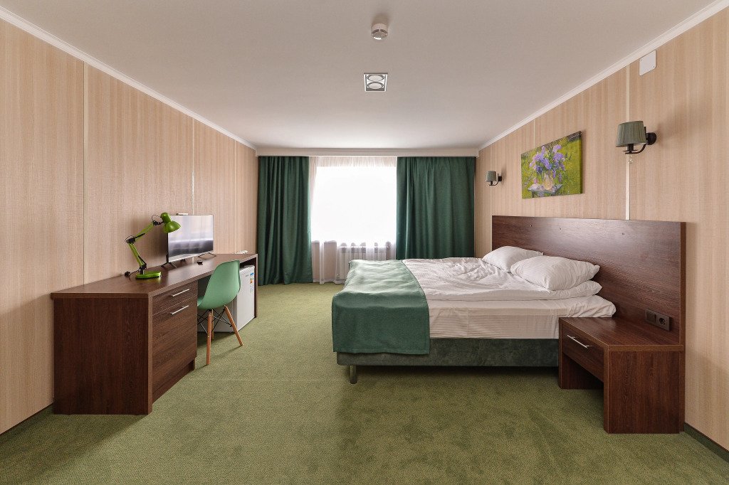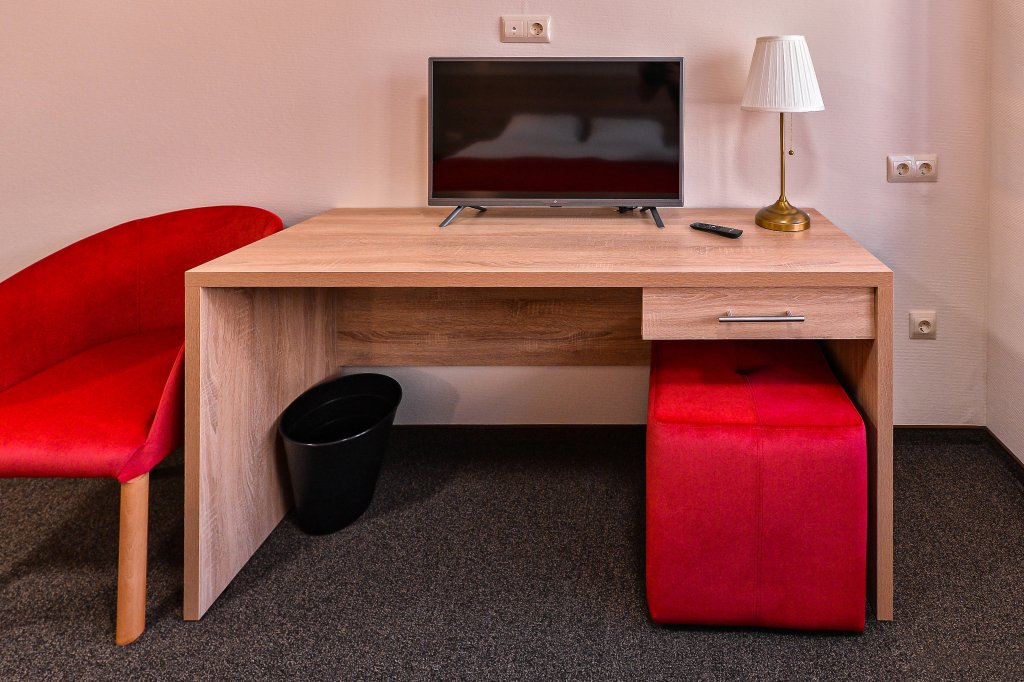 В номере вы найдёте телевизор. Оснащение зависит от выбранной категории номера.