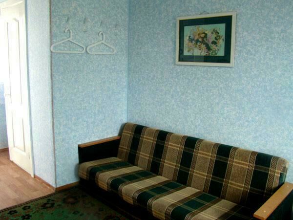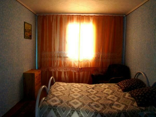 Двухспальная кровать и раскладной диван-книжка, подушки, одеяла, покрывала, постельное бельё, комод, телевизор с DVD, стол и 3 табурета, крючки с плечиками, кухонные шкафчики, посуда, эл.плитка, эл.чайник, большой холодильник, собственный санузел — унитаз, раковина, холодное, горячее водоснабжение.