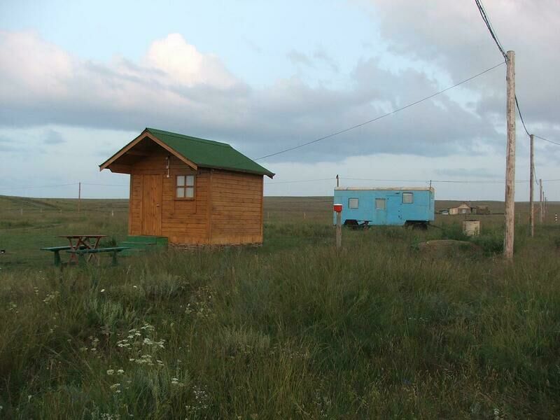 Вагончик с электричеством состоит из двух комнат: спальня и кухня. В жилой комнате имеется четыре спальных места, напоминающие спальные места в поезде. В кухне имеется небольшой столик с лавочками, электроплита, полочки для посуды. На улице возле дома стоит стол с двумя лавочками.