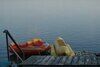 Территория базы огорожена и охраняется, благоустроена для отдыха всех гостей без исключения. Здесь есть и спортивная площадка для игры в волейбол, настольный теннис, водные развлечения (катамараны, гидроцикл, таблетка, банан), батут, детская площадка, регуляно проводятся дискотеки с живой музыкой. С пирса удобно купаться или ловить рыбу, улов можно приготовить на берегу на мангале рядом с беседкой или навесом.