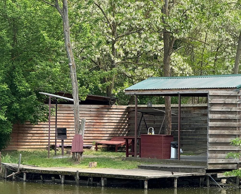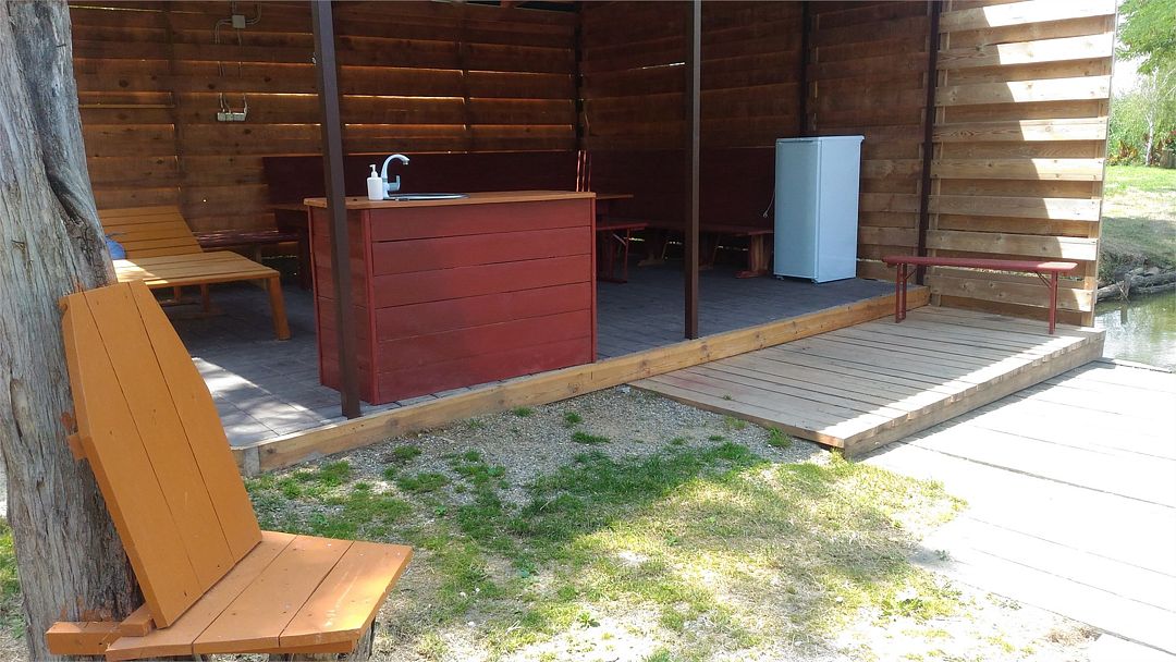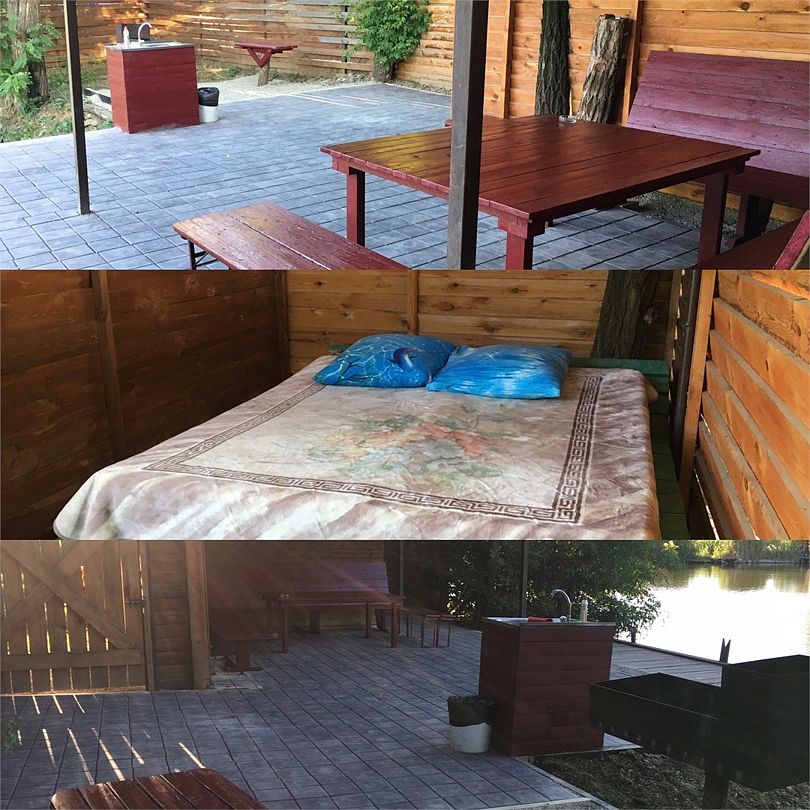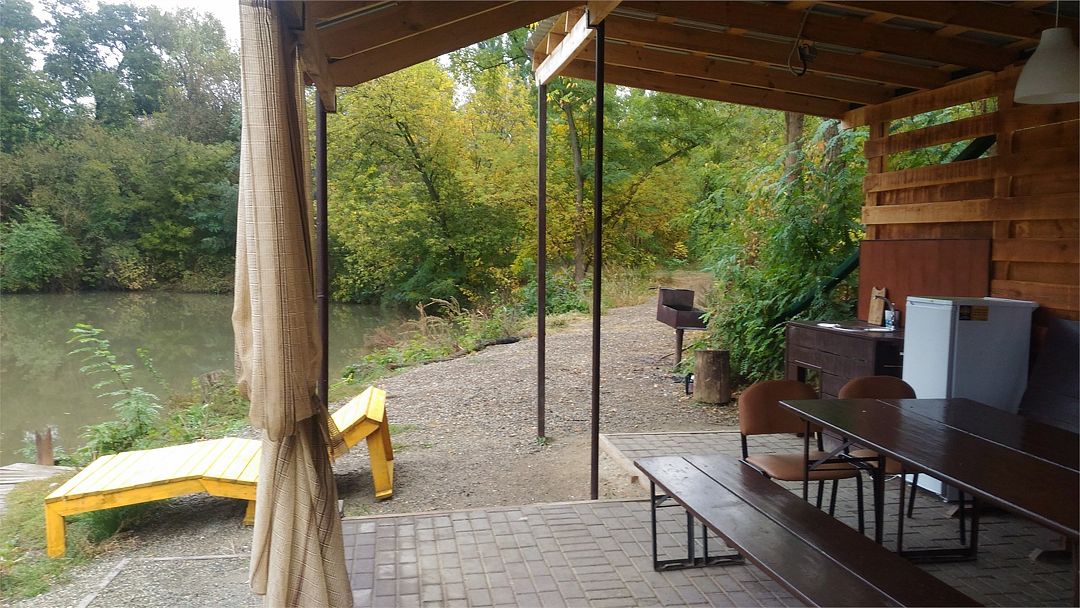 Уединенная просторная беседка с 2х комнатным четырехместным домиком на берегу. Зоны для отдыха, рыбалки, барбекю.