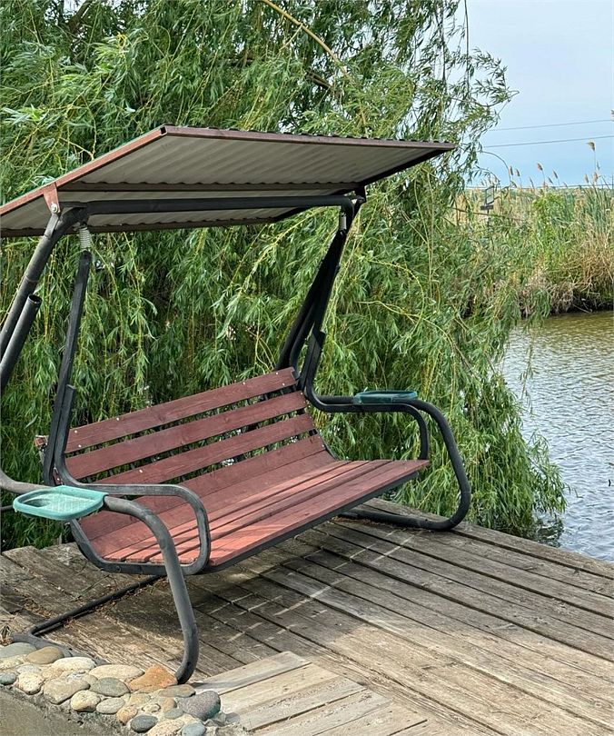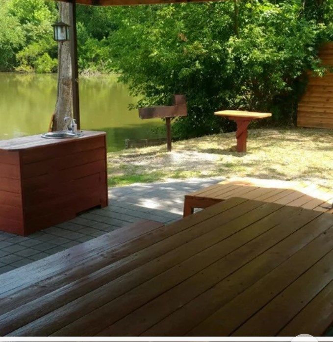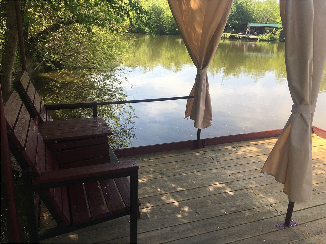 Уединенная комфортабельная беседка с отдельным подъездом оснащена всем необходимым для отдыха и рыбалки + трехместный домик на берегу.