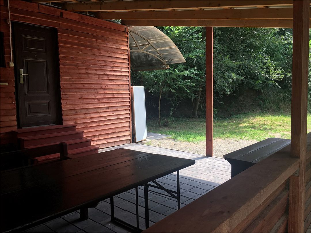 Просторная беседка с отдельным подъездом и 4х мест. двухкомнатный домик, оборудованный всем необходимым для долгосрочного, комфортного проживания.