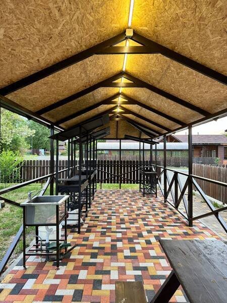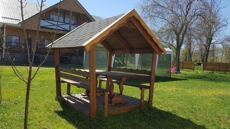 На выбор 2 вида беседок: маленькая с размещением до 8 человек и большая до 16 человек. Беседки на территории гостевого дома бронируются по предварительному заказу.