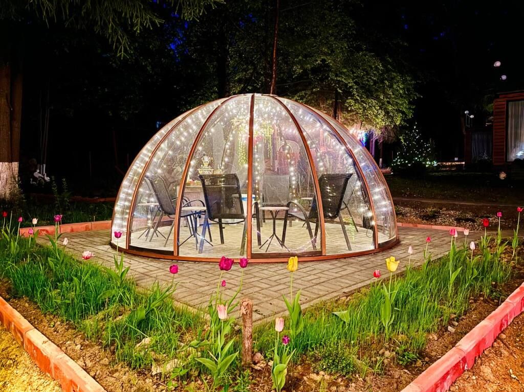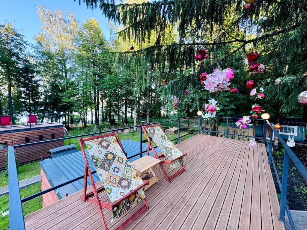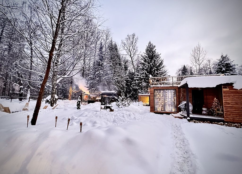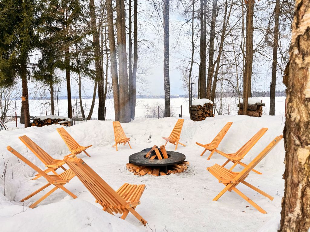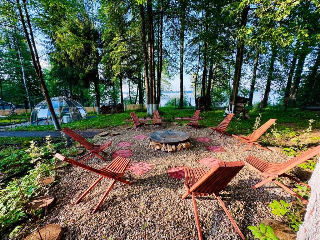 На общей территории имеется чайная беседка Иглу с самоваром и баранками, зону отдыха со столами, которые можно объединить для большой компании. Организовано множество локаций для фотосессий, есть уголок под открытым небом для вечерних посиделок у костра.