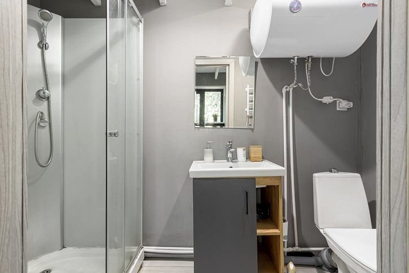 Очень комфортный двухэтажный дом (более 32 кв.м.) с панорамными окнами и «вторым светом». В доме теплый пол. Здесь удобно разместиться всей семьей даже с ребенком или компанией друзей.