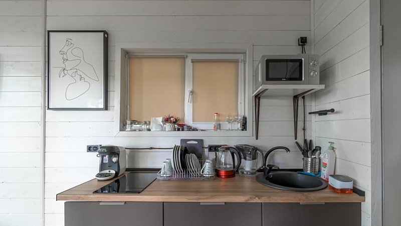 Двухуровневый домик (24 кв.м.) с панорамными окнами и красивым видом. Рассчитан на максимальное размещение 4 человек