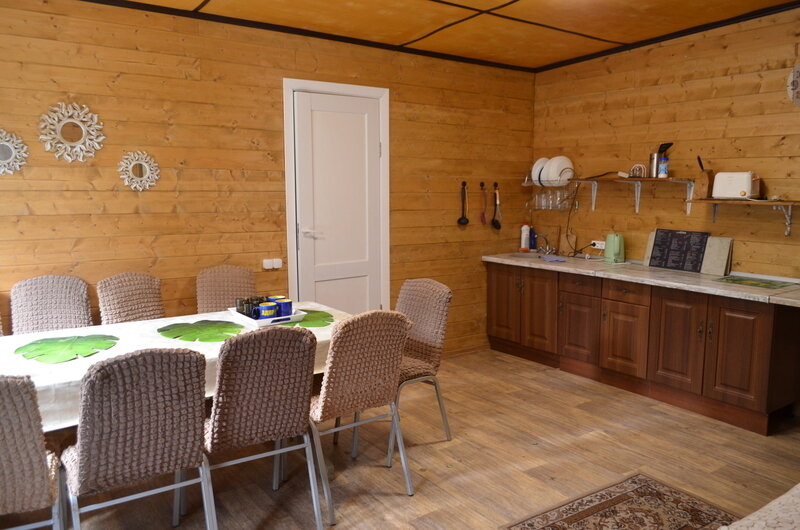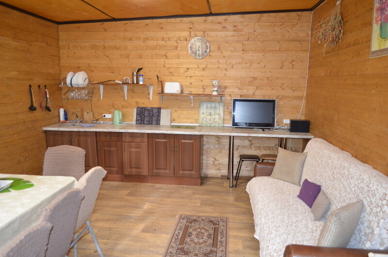 - русская баня на дровах. Данную баню можно снимать по-часово. Баня рассчитана на компанию до 15 чел. Она оборудована просторной гостиной со столом, кухней (со всей необходимой посудой), диваном, телевизором. При необходимости баню можно снять без бронирования коттеджа.