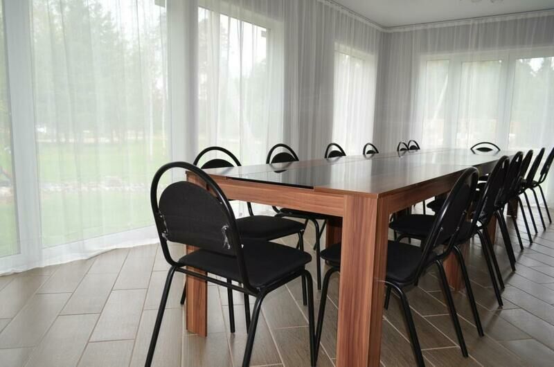 Инфраструктура: зона отдыха, душБаня рассчитана на компанию до 15 человек. Она оборудована просторной гостинной со столом, кухней (со всей необходимой посудой), диваном, телевизором. При необходимости баню можно снять без бронирования коттеджа.