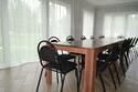 Дом на двух этажах позволяет комфортно разместить 10-12 человек. Включает в себя 5 закрытых спален, выполненных в разном стиле, входной группы, гостиной, объединённой с кухней и большим банкетным залом с панорамным остеклением.