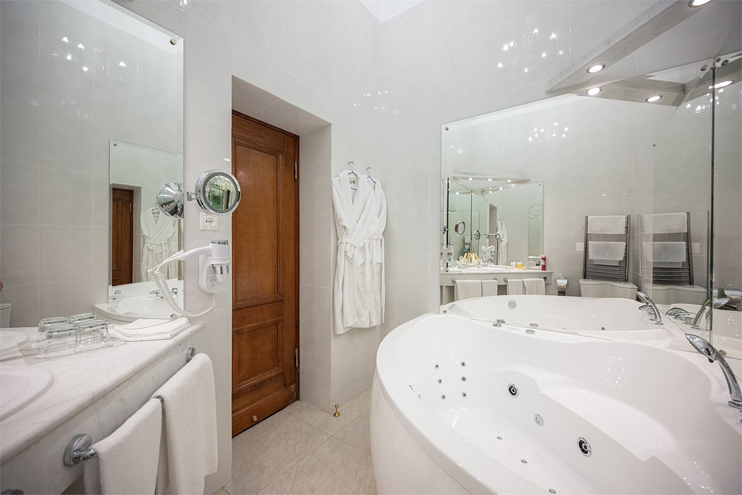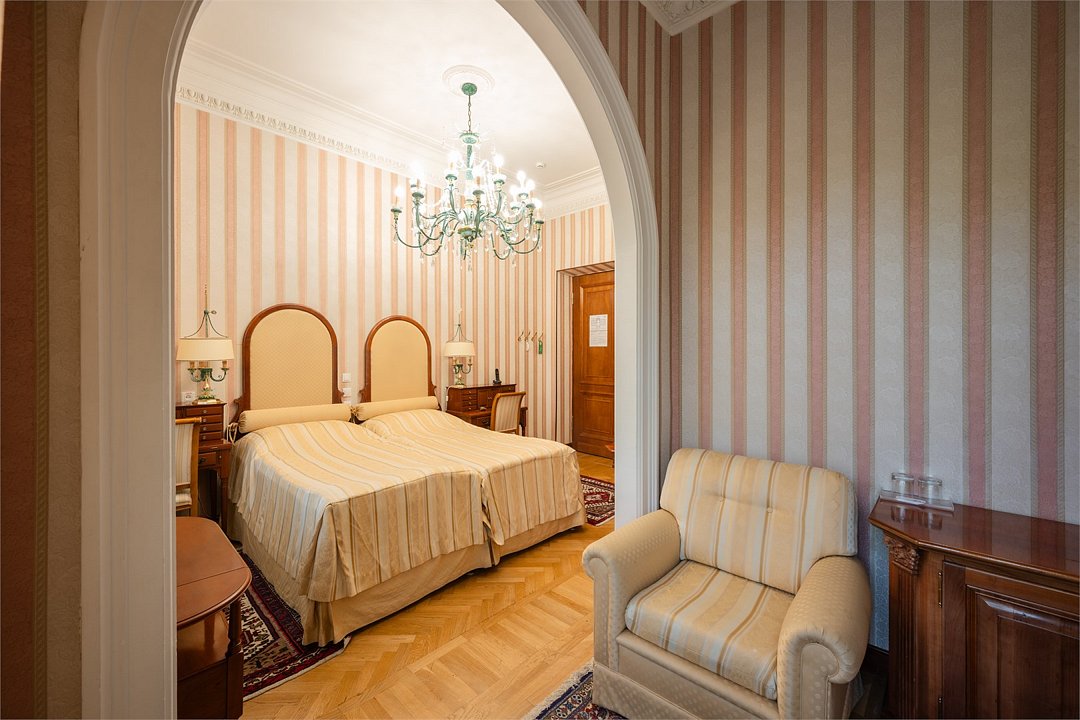 Интерьер номера выдержан в сдержанно-аристократичном стиле: мебель из натурального дерева, теплые тона отделки, изысканный текстиль. Всё продумано для того, чтобы вы почувствовали себя по-настоящему уютно и расслабленно.