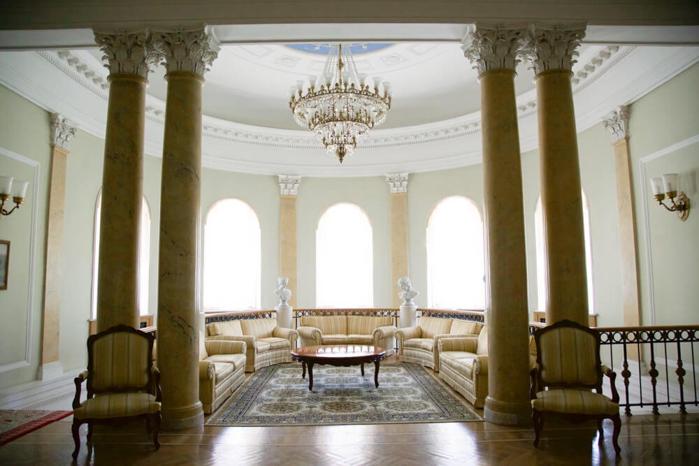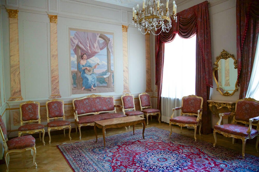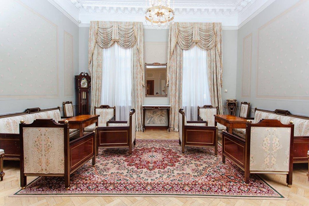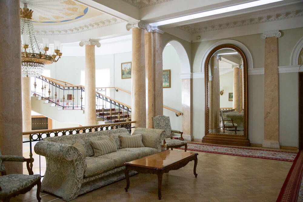 Из окон открывается вид на парк или историческую часть усадьбы, что создаёт особое настроение и позволяет почувствовать связь с прошлым этого места.