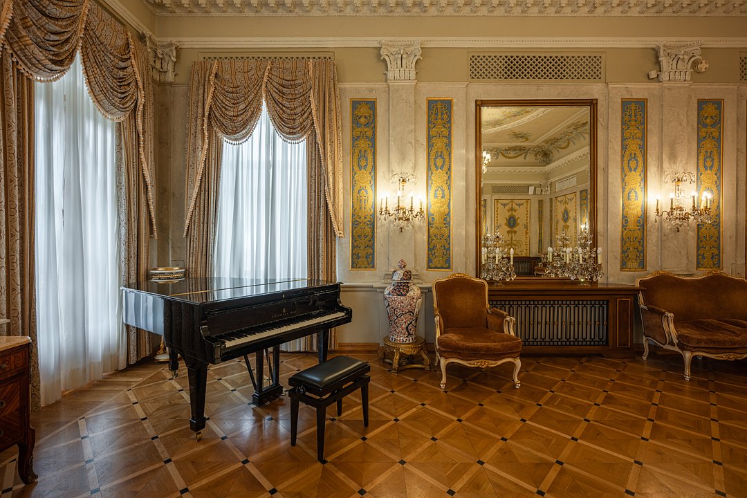 Банкетный зал «Музыкальный» оснащен дневным освещением, Wi-Fi и балконом, создавая комфортную атмосферу для различных мероприятий. Особенностью зала является рояль «Steinway&Sons», который добавляет элегантности и может стать фокусом на музыкальных событиях.