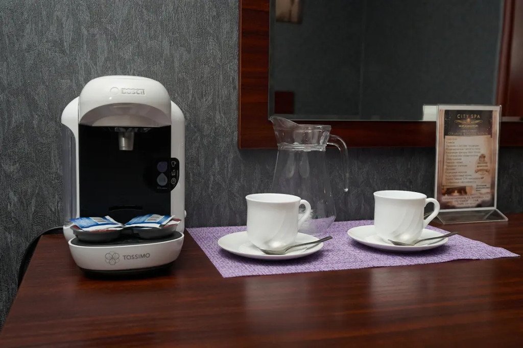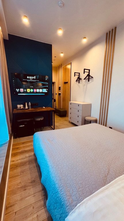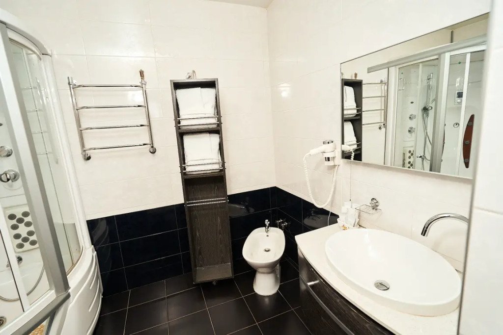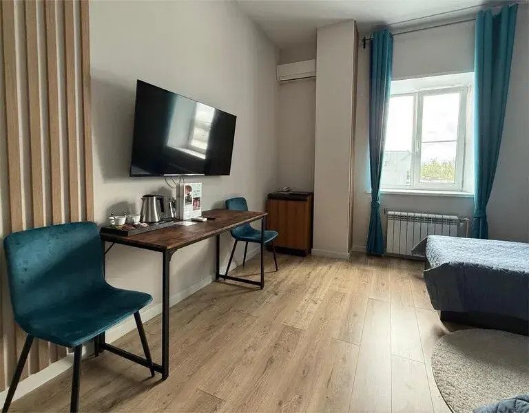В номере вы найдёте телевизор и халат. Оснащение зависит от выбранной категории номера.