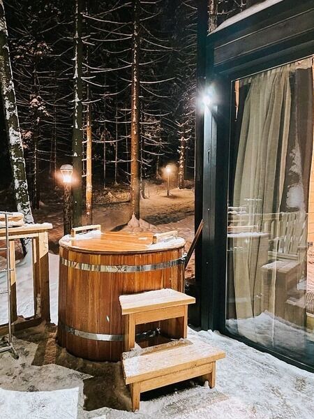 Рядом с домом расположен банный чан (в стоимость не включён). Погреться в нём можно под открытым небом при любой погоде.