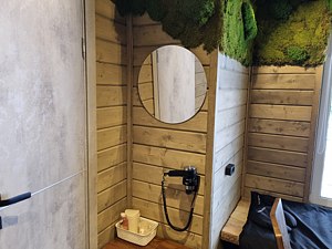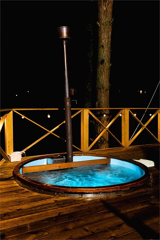 На открытой террасе расположена японская бочка фурако (в стоимость не включена). Погреться в ней можно при любой погоде под открытым небом.