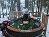 Возле дома — тёплая беседка с камином, а рядом установлен банный чан (в стоимость не включён).