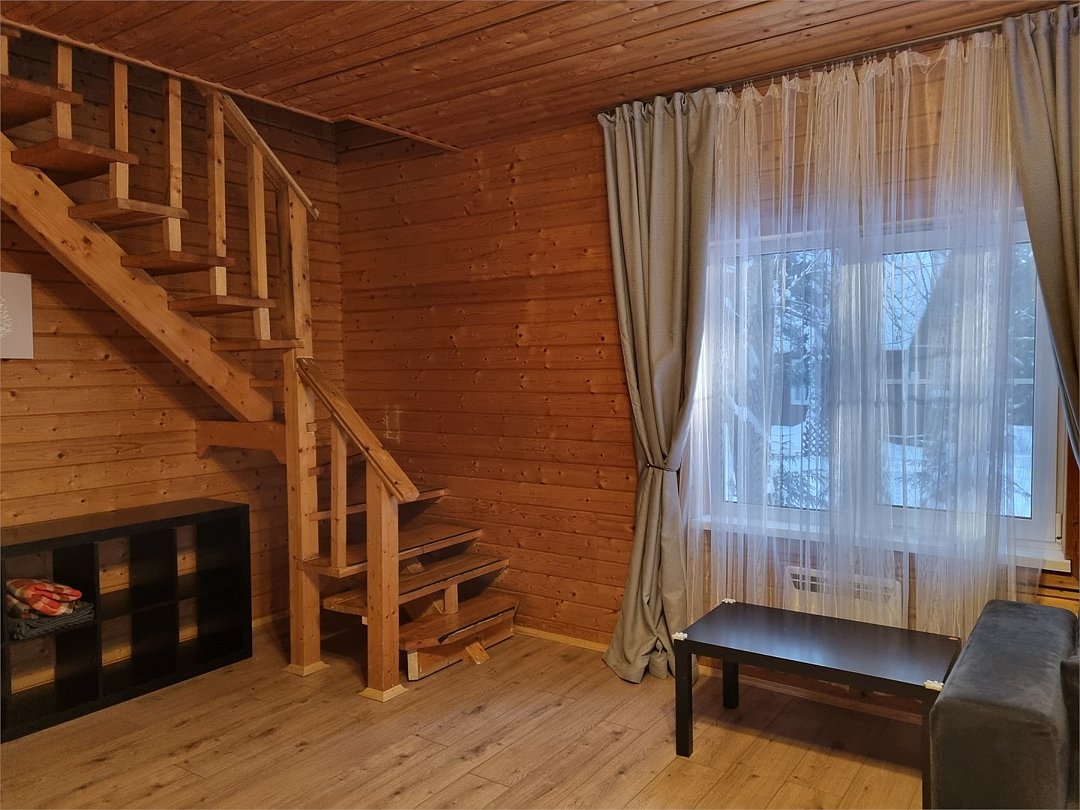 Двухэтажный сезонный дом с одной просторной спальней на втором этаже и выходом на лоджию.