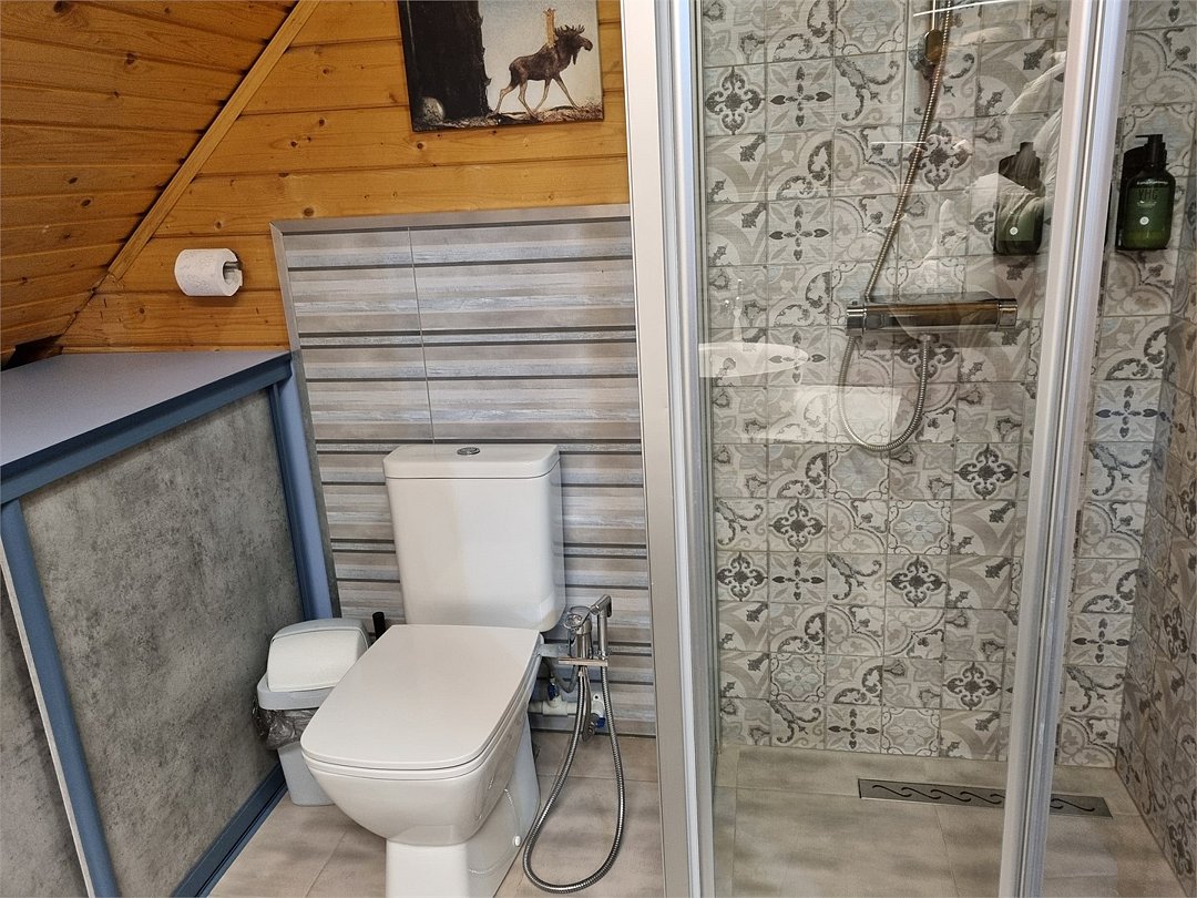 В доме: тёплый пол, большая двуспальная кровать, душ и туалет. А самое главное — собственная дровяная сауна.