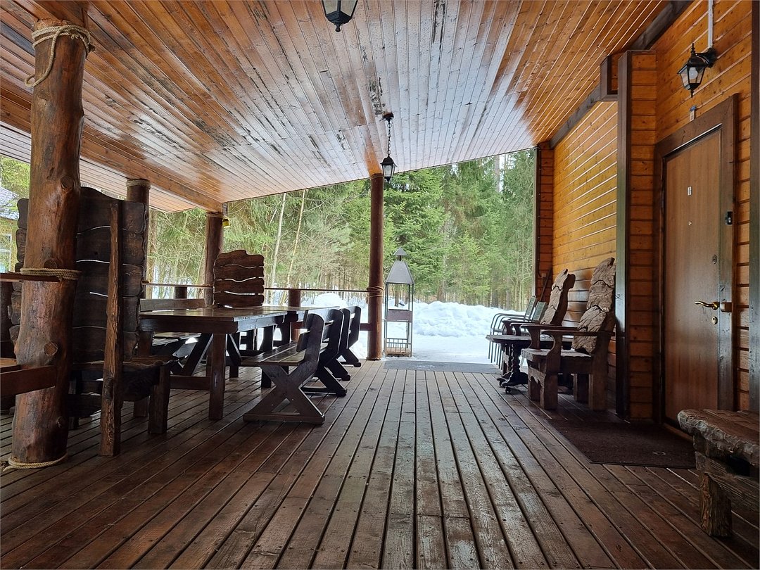 Просторная открытая веранда с выходом к собственной мангальной зоне. Возле дома — большой банный чан (в стоимость не включён).