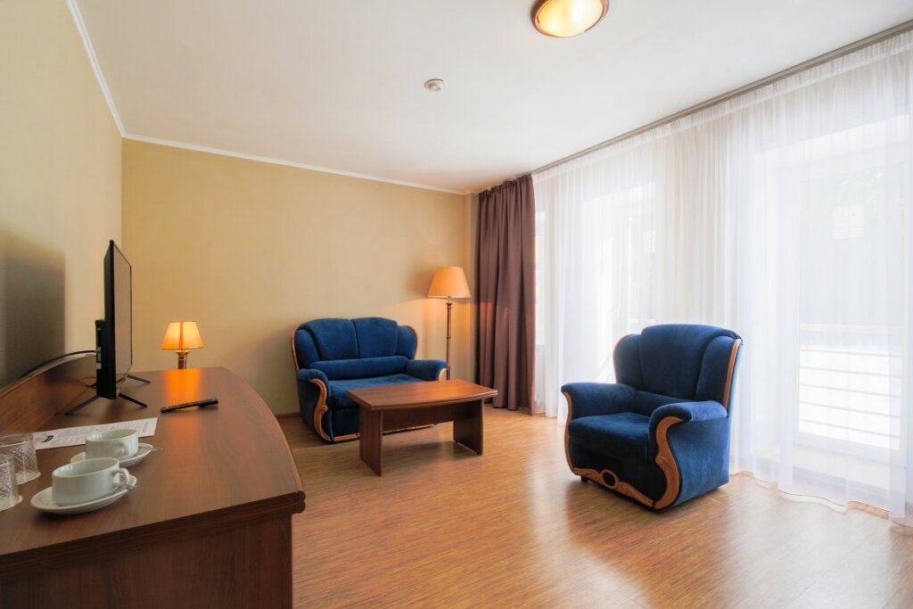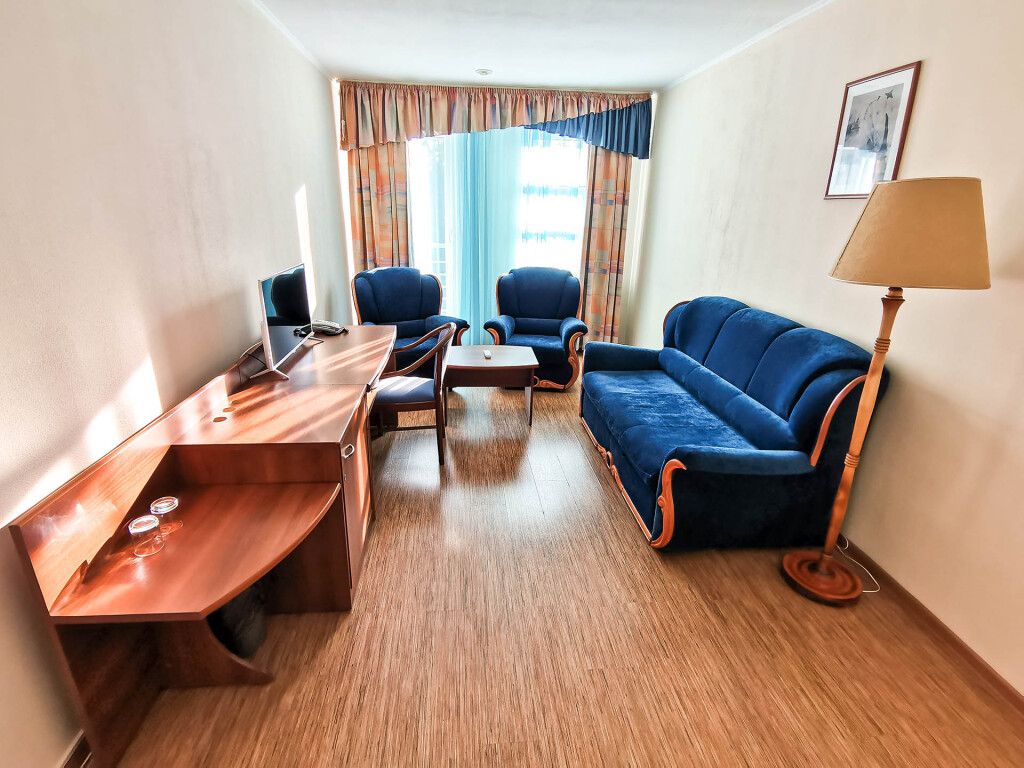 Дополнительно для Вас: два телевизора, фен, холодильник, Wi-Fi, телефон, чайный набор, халат, тапочки.