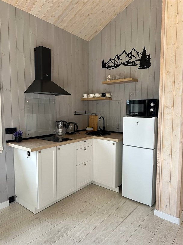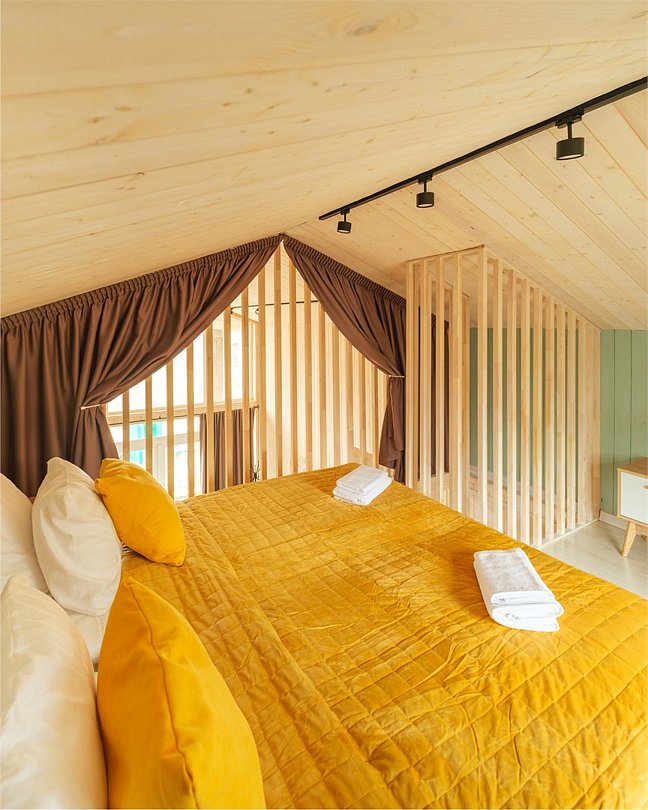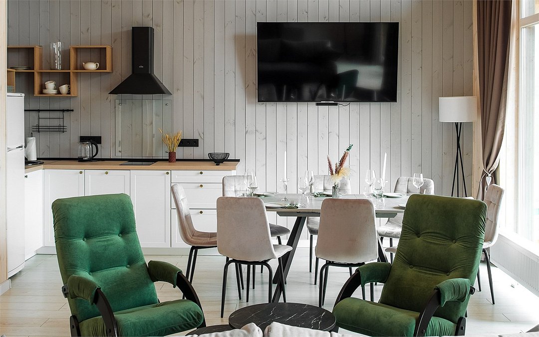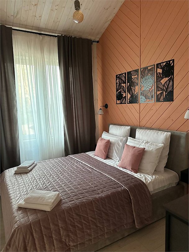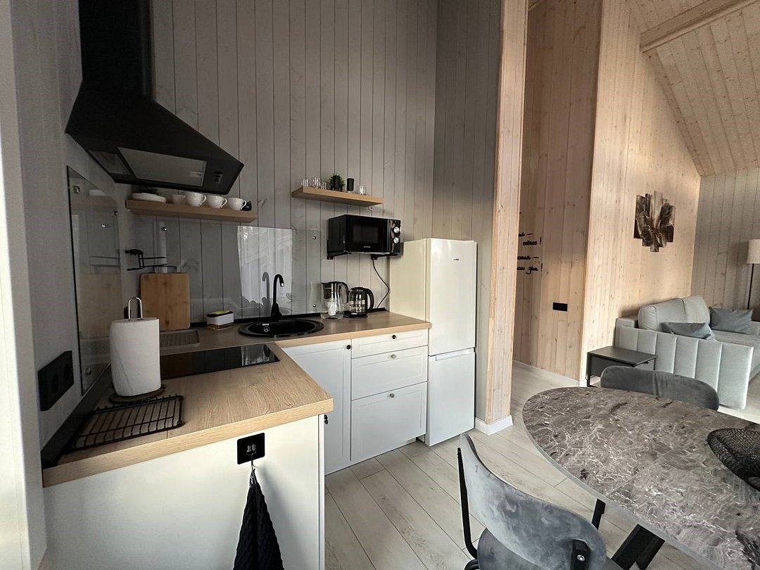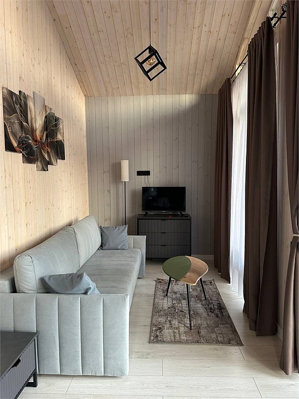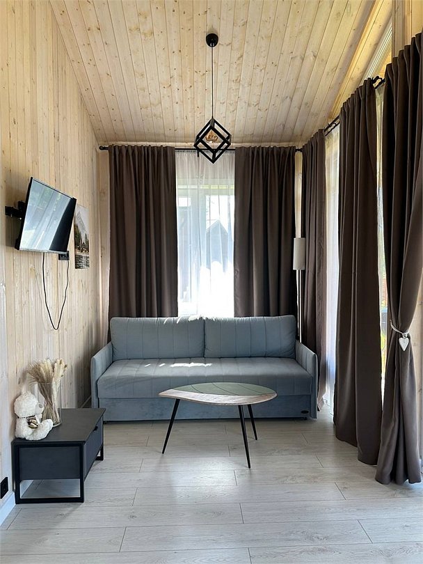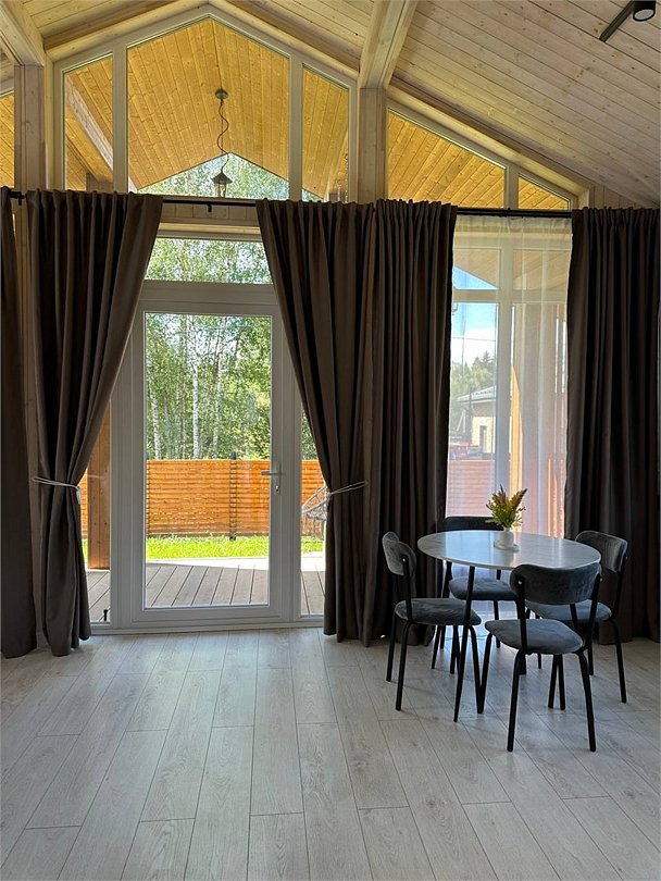 Wi-Fi, холодильник, фен, плита для приготовления пищи, ванная комната, санузел, теплый пол, терраса, двуспальная кровать, чайник, туалетные средства, панорамные окна, диван-кровать, телевизор со Smart TV, теплые полы, номер для некурящих, окна от пола до потолка, можно с питомцамиВ доме