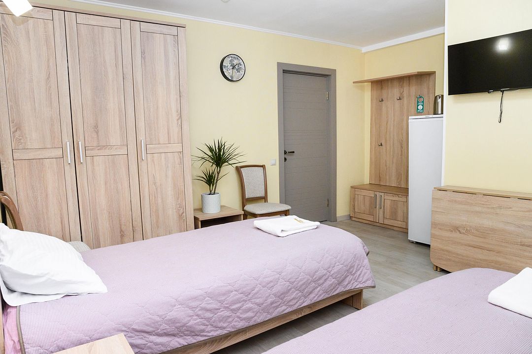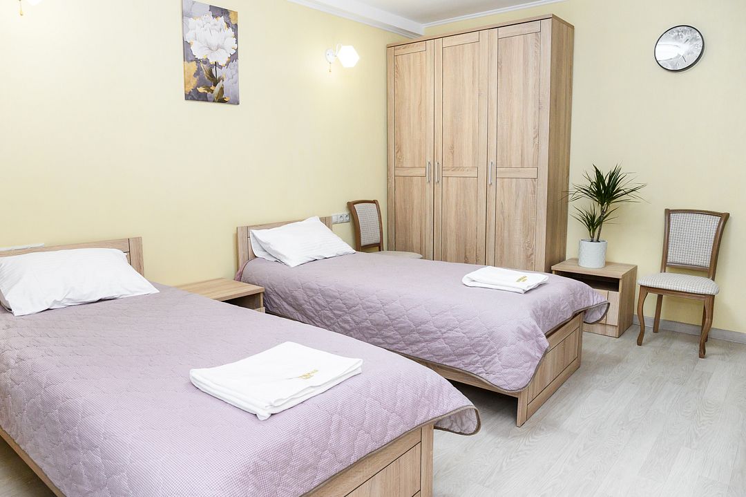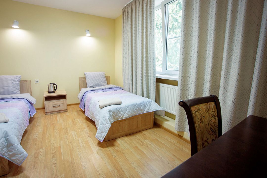 Двухместный номер с двумя кроватями без санузла. Кухня и санузел на этаже.