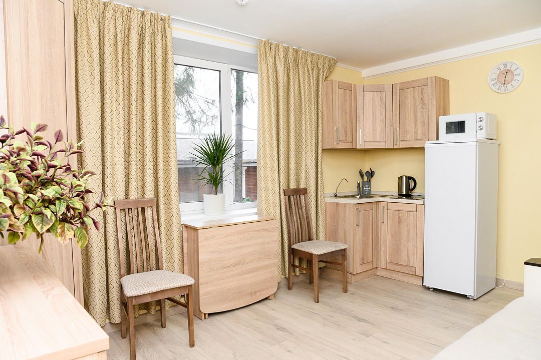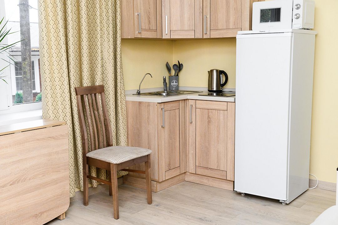 Комфортный одноместный номер с письменным столом и холодильником. Кухня и санузел на этаже.