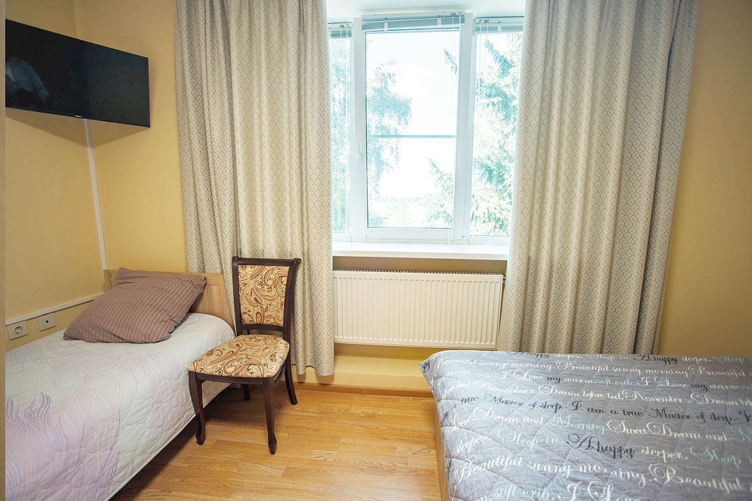 Двухместный номер с двумя односпальными кроватями и санузлом. Кухня на этаже.