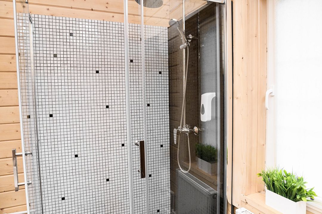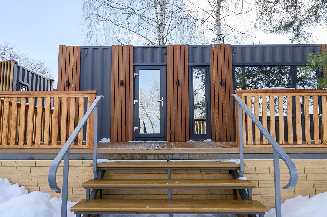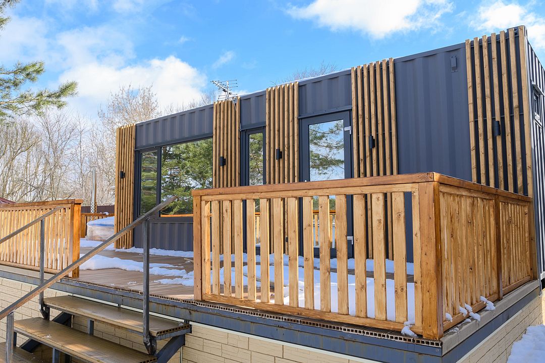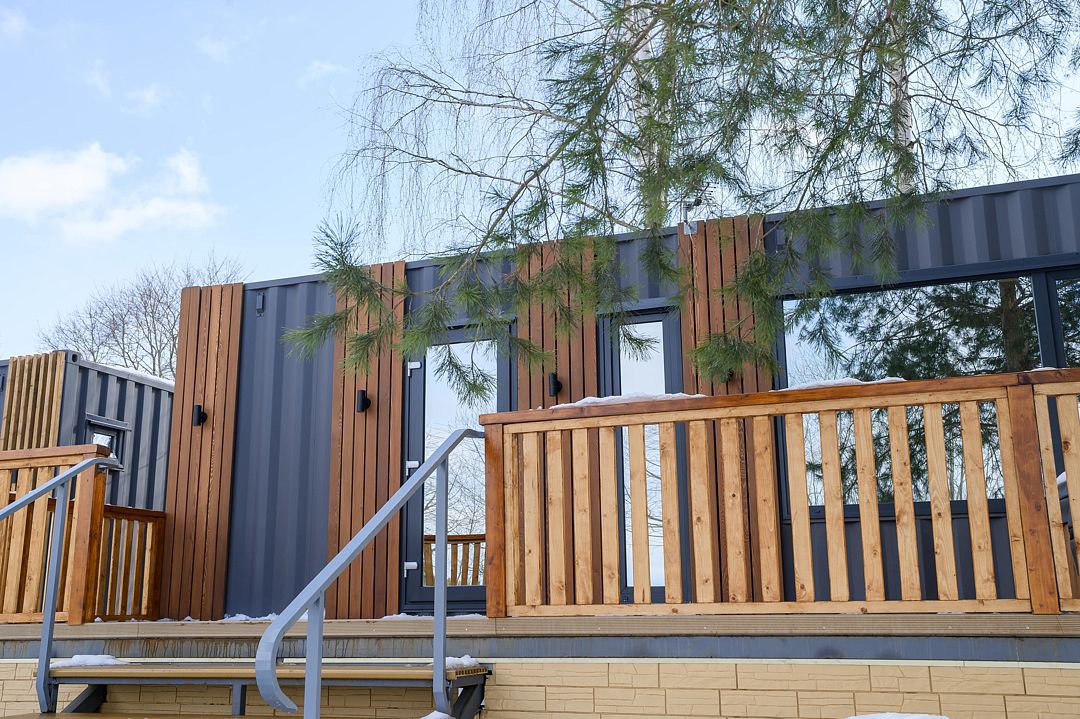 Домик контейнерного типа с панорамным видом на Историческое водохранилище.