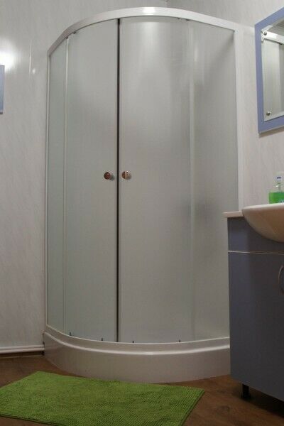 Двухуровневый домик. На первом этаже душ с туалетом, на втором – небольшая спальня и две односпальные кровати.