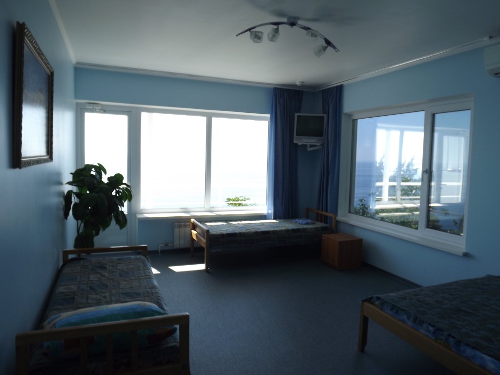 Путешествие с семьейПервая поездка в Крым. Спасибо за отличные впечатления!Итак, начну с того, как нам не хотелось отсюда уезжать и как хочется при возможности вернуться сюда снова! Но обо всем по порядку. Номер в духе минимализма, но уютно, чисто, имеется все необходимое. В нашем небольшом трехместном номере с двумя кроватями (двуспальной и односпальной) вполне комфортно прибывать втроем, и, кстати говоря, семья из четырех человек, где второй ребенок маленький и может спать с родителями, вполне поместится. Но вообще в арсенале есть и четырехместные. Для меня, как любителя твёрдых поверхностей, стало приятным бонусом не прогибающаяся удобная кровать. А какого это, после комфортного сна ежедневно созерцать, едва продрав глаза, потрясающие пейзажи моря с террасы! Да, придётся спускаться до пляжа минут 7-10 и назад подыматься, поскольку отель расположен на горе, но оно того стоит. Атмосфера в отеле и на всей территории особая и очень приятная, релакс и спокойствие. Спасибо большое Андрею, владельцу мини-отеля: небольшой, но ухоженный сад дышит свежестью, Андрей много его поливает. Он вообще с утра до вечера весь в делах, при этом оперативно реагирует на любые просьбы и вообще позитивный,внимательный к деталям. И персоналу расслабляться не даёт, примером показывая,что такое качественный сервис и доброжелательные отношение к гостям. Было приятно, когда на вопрос про мыло, горничная Вика ответила, что здесь это не предусмотрено, но предложила новую пачку из личных запасов. Она же на просьбу дать дополнительно две простыни, не задавая лишних вопросов, тут же их принесла. Спасибо Оле за её вкуснейшие блинчики, сырники,щедрые порции супов и прочие радости для наших желудков) И, конечно, за её молчаливую, безмятежную и усталую улыбку (работы,правда,очень много). Очень приятна была её забота, особенно, когда забывали заказать еду или приходили вовсе не по времени, Оля всегда умудрялась нас накормить)По поводу уборки: каждое утро на территории отеля моют полы на верандах протирают столики и всю мебель, ограждения - все дышит свежестью и чистотой. По поводу номера - только раз в неделю, если нужно чаще,то по запросу и за отдельную плату. Думаю, если бы это было озвучено сразу, негативных моментов по этому поводу не возникало бы вовсе. Мы в принципе не сорили особо, поэтому не парились на эту тему, есть,правда, димкомфорт в душевой, шторка короткая и очень мокрым пол от этого во всем санузле становится, как не старайся аккуратно мыться. Было бы не лишним коврик туда или чтобы тряпка была подтирать пол. Что ещё? Здорово, что на общей терассе на три номера есть чайник и большой холодильник с хорошей морозилкой, под мороженое в самый раз и ледяной чай делать) Про пляж. Мы чаще бывали на том, что подальше, от отеля направо, огибая церковь, выходя к остановке, потом через дорогу перейти, немного назад вернуться и спуститься вниз по переулку к морю. По дороге здесь лавочка: ежедневно привоз свежих фруктов по адекватным ценам. Сам пляж: чем ближе к пирсу, тем чище море. Поскольку солнце здесь встаёт рано,около 7 утра, мы ходили по территории пансионата "Рассвет", там свободный проход. Очень здорово пройтись среди кипарисов и вкусно пахнущих хвойных деревьев. Хоть тут и старенькие обшарпанные домики, но ухожено и чисто, персонал, завидев издали, улыбается, здоровается. Вр