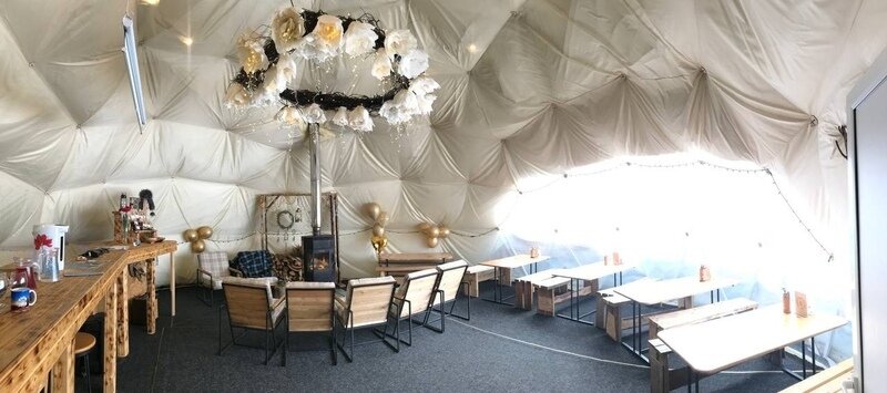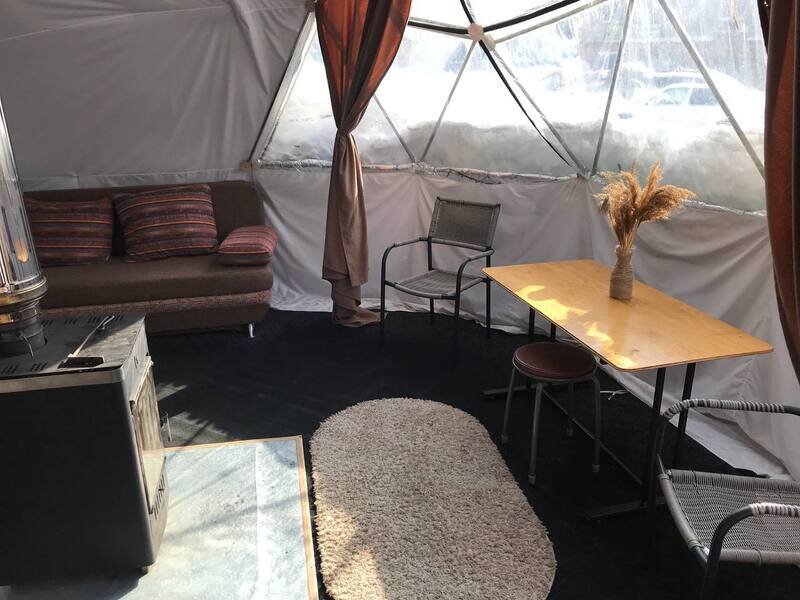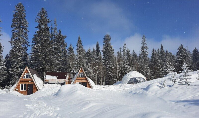 Большой купол на территории совмещает функции кафе, бара, вечернего кинотеатра и гостевого пространства. Доступ свободный. В глэмпинге работают повара, готовящие завтрак, обед или ужин по предварительному заказу. Мангалы для шашлыка и беседка установлены у каждого дома, есть банный комплекс с русской баней, фурако, сибирскими чанами и сауной-бочкой.