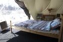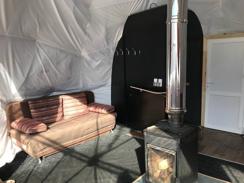 Все жилые строения отапливаются, летом охлаждаются за счет полотна на панорамном окне, в жаркую погоду подключаются кондиционеры. Постельное белье выдается во всех домиках, посуду нужно брать с собой. В куполах и шалашах есть мини-кухни с газовой печкой и чайником, в гексагоне – кухня с барной стойкой и набор посуды на 10 персон. Газовый баллон приобретается дополнительно или привозится с собой.