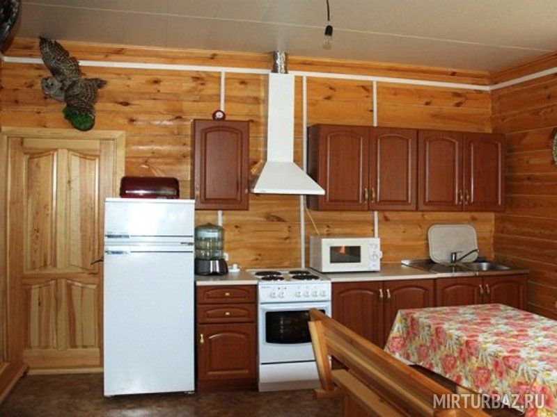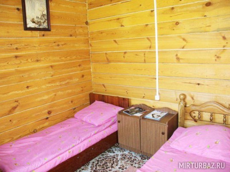 2 Летних домика. Однокомнатный номер с двуспальной кроватью, тумбочками, ковровым покрытием, холодильником, ТВ, электрочайником, СВЧ-печью, набором посуды. 2 осн. места