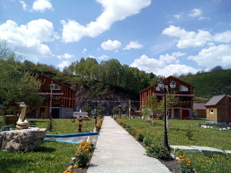 База отдыха находится на побережье речки Ануй в поселке Искра. Деревянные коттеджи расположились прямо у подножья величественной скалы. Территория базы находится в парковой зоне и огорожена по периметру. Среди красивых деревьев обустроены уютные беседки, в которых можно насладиться единением с природой.